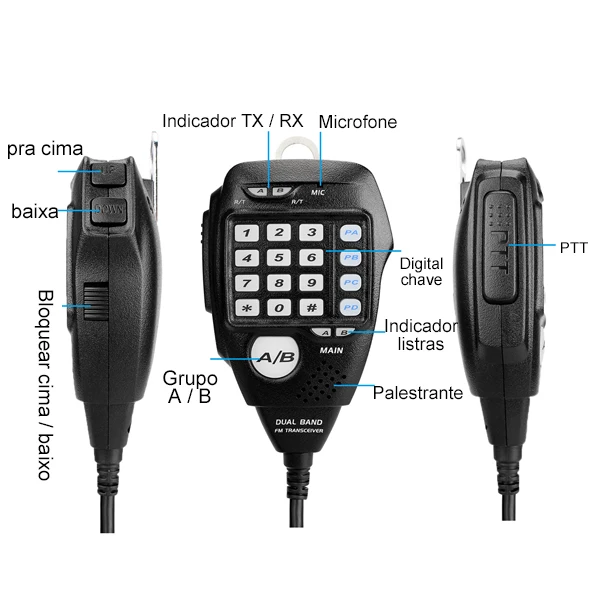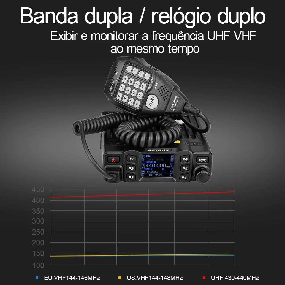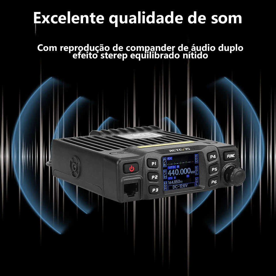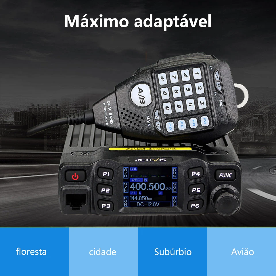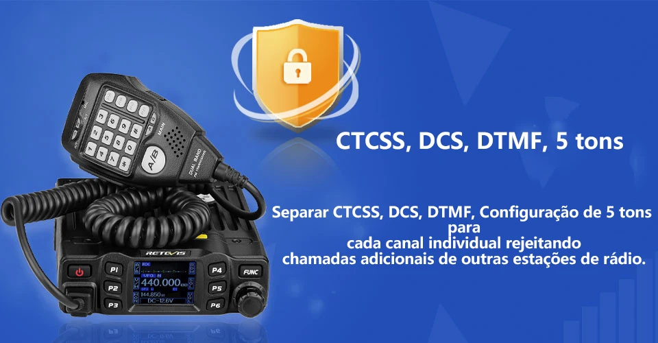 Potência de Saída de 25W Rádio Móvel Dual Band / Display Duplo / Duplo Monitoramento Canais de Memória Editáveis Grande Tela LCD CTCSS, DCS, DTMF, 5Tone Excelente Qualidade de Som Teclado Numérico