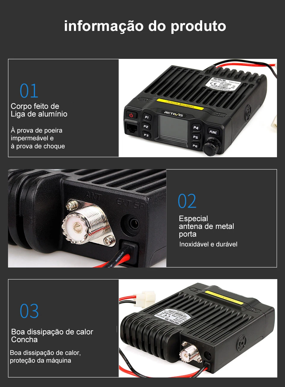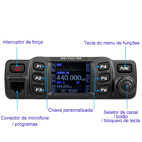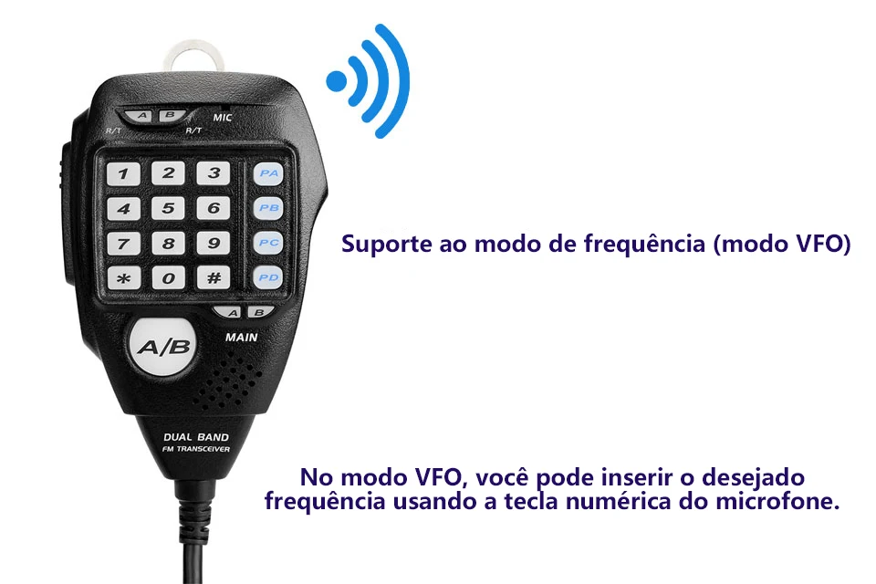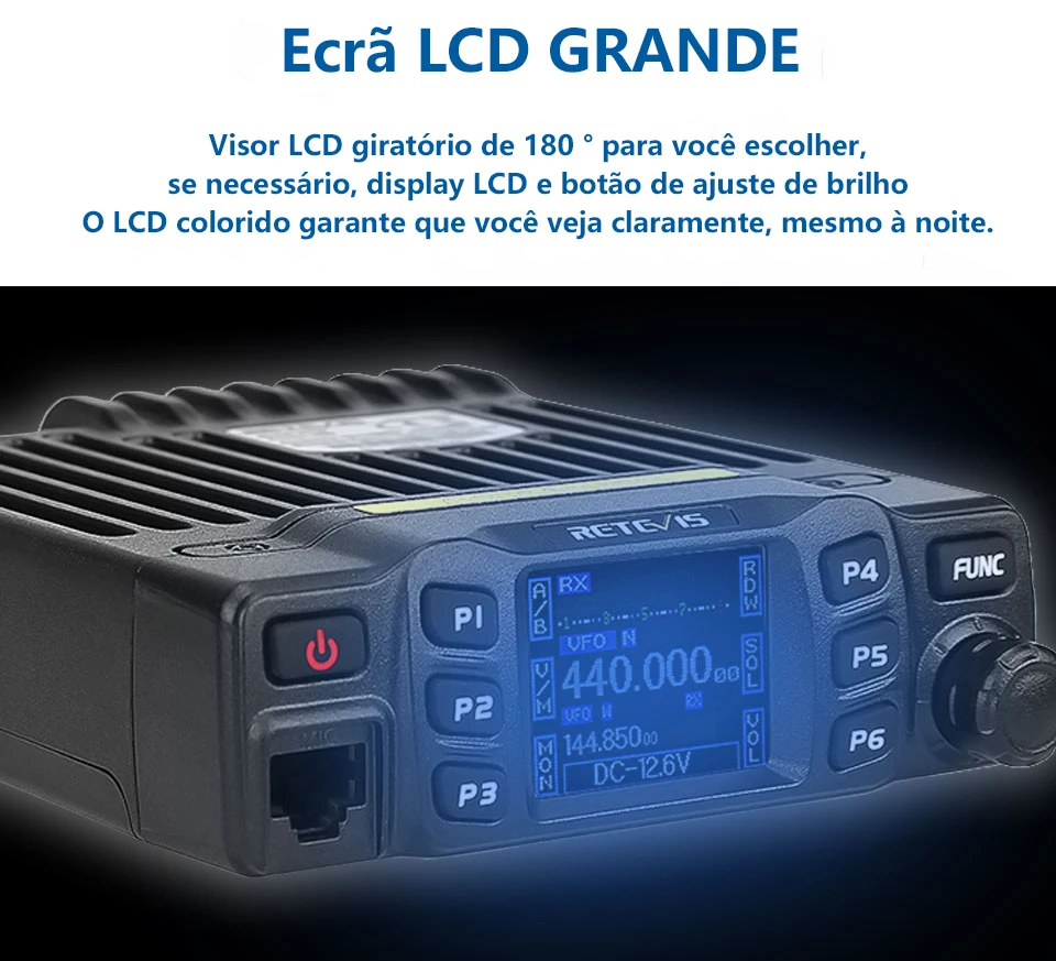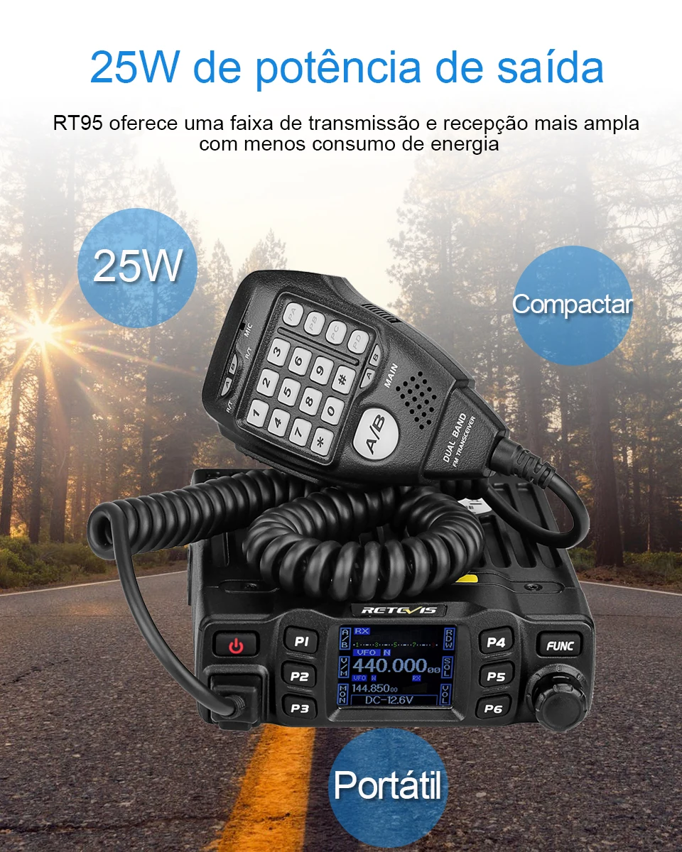 Potência de Saída de 25W Rádio Móvel Dual Band / Display Duplo / Duplo Monitoramento Canais de Memória Editáveis Grande Tela LCD CTCSS, DCS, DTMF, 5Tone Excelente Qualidade de Som Teclado Numérico