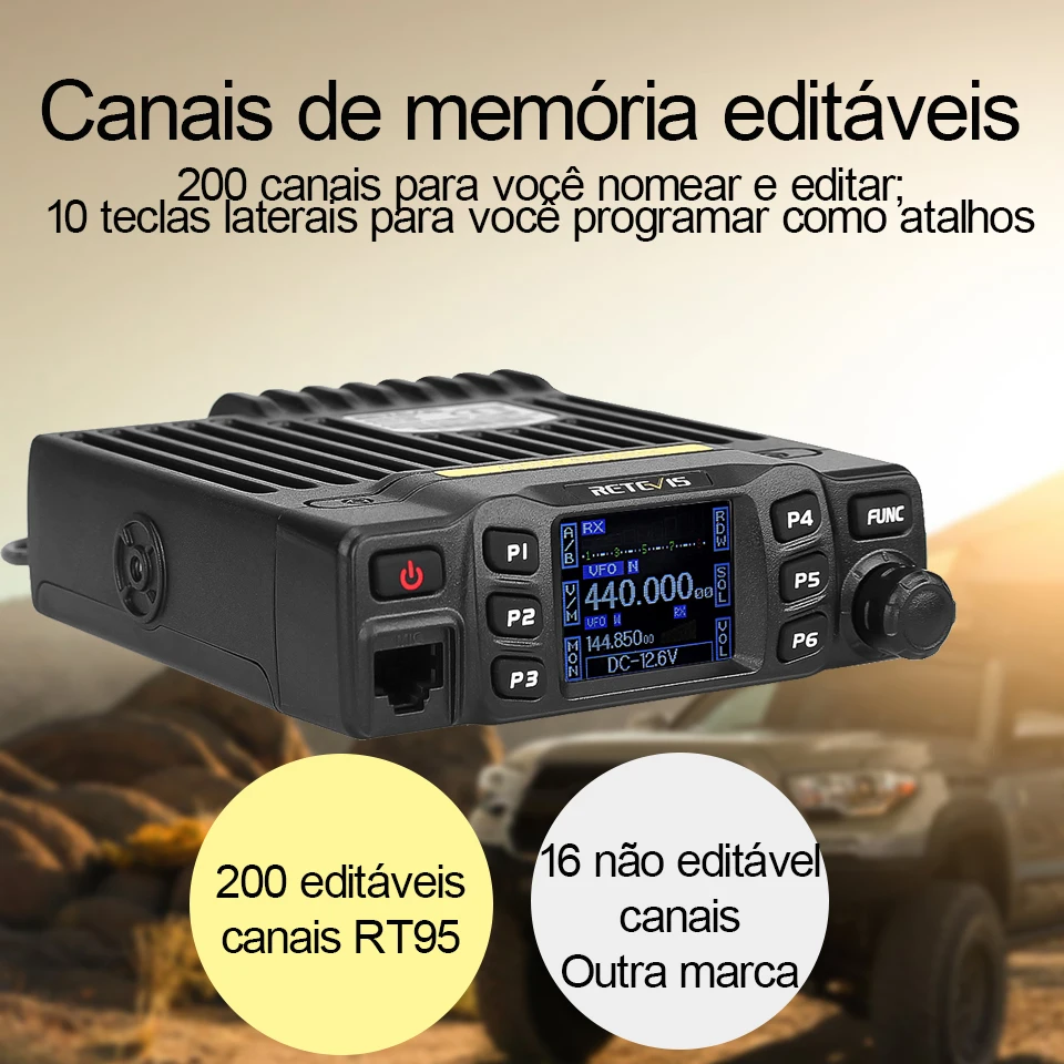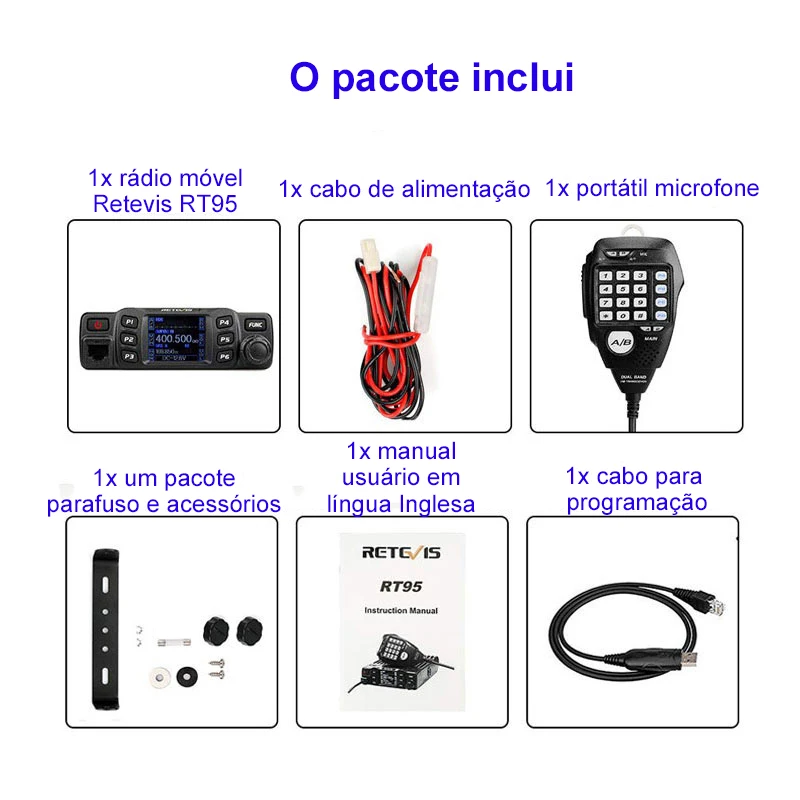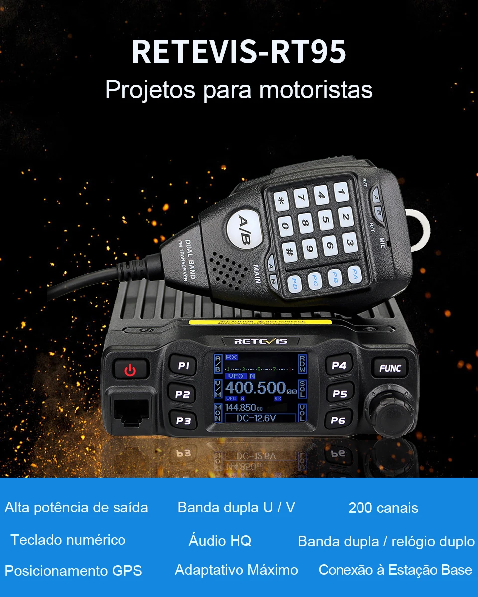 Retevis rt95 carro estação de rádio bidirecional 200ch 25w alta potência vhf uhf rádio móvel rádio do carro chirp ham rádio móvel transceptor Rt95 rádio móvel tem bom alojamento, solidez & estabilidade, funções avançadas e confiáveis, perfeito e valioso. Este rádio móvel amador especialmente projeta para motoristas e persegue filosofia de inovação e praticidade.