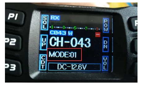 3) pressione e segure a tecla ptt no microfone externo do orador. Modo não. mude para a cor azul, em seguida, gire o botão do canal para escolher a faixa de freqüência que você precisa